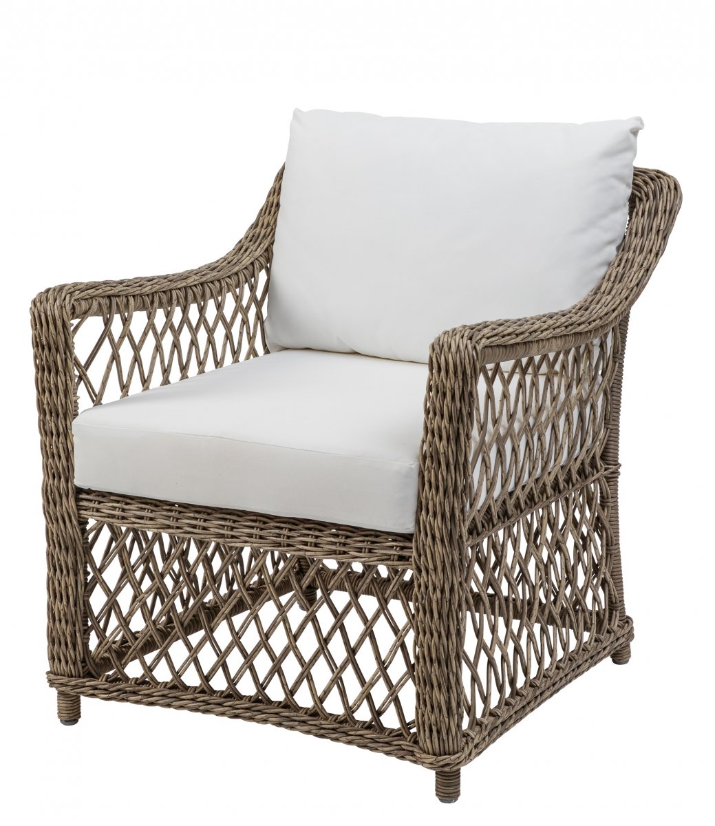 Denna fåtölj är tillverkad i konstrotting där fibern är genom färgad och därför UV-resistent. Så den bleks inte av solen. Den förblir sval även när möbeln står länge i solen. Konstrottingen är ISO-certifierad( internationellt accepterad standard). Ingår sitt och ryggdyna i polyester där överdraget är tvättbart.