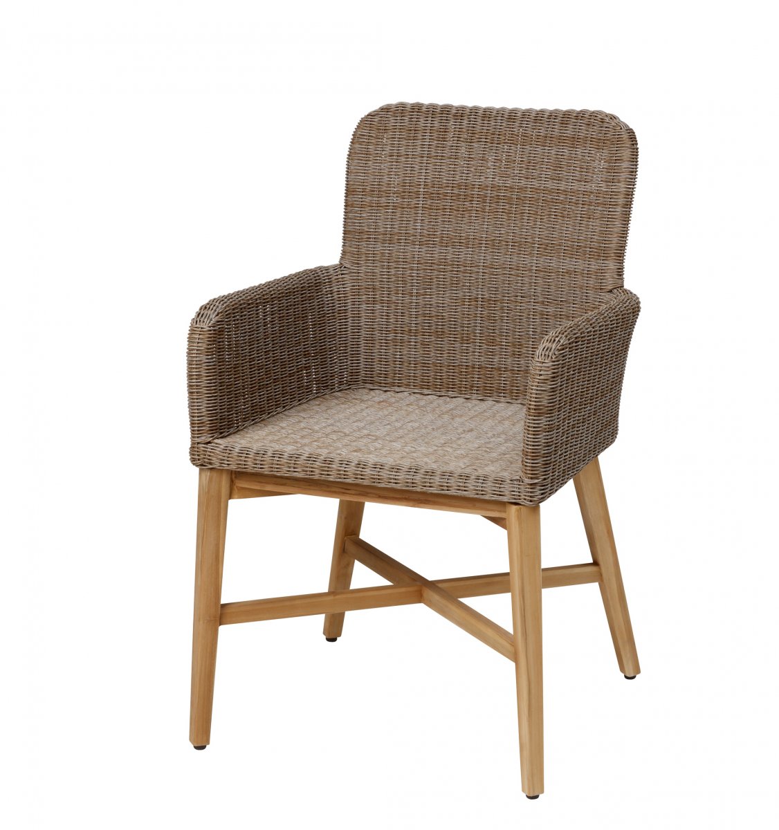 Denna stol är tillverkad i konstrotting där fibern är genom färgad och därför UV-resistent. Så den bleks inte solen. Den förblir sval även när möbeln står länge i solen. Konstrottingen är ISO-certifierad( internationellt accepterad standard). Underrede i odlad teak av högsta kvalitet från Indonesien. Skruvar/beslag i rostfritt stål. Dyna Vreta i polyester eller Sunbrella passar till.
