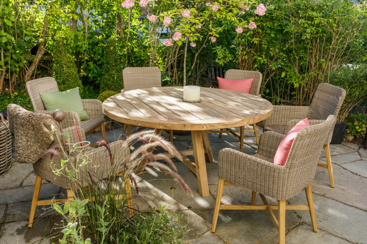Det kan uppstå sprickor i träet med tiden. Detta beror på att teak är ett levande material som rör på sig i varmt och kallt klimat. Teakmöbler klarar av att stå utomhus hela året. Använd gärna möbelskydd som finns att köpa till.