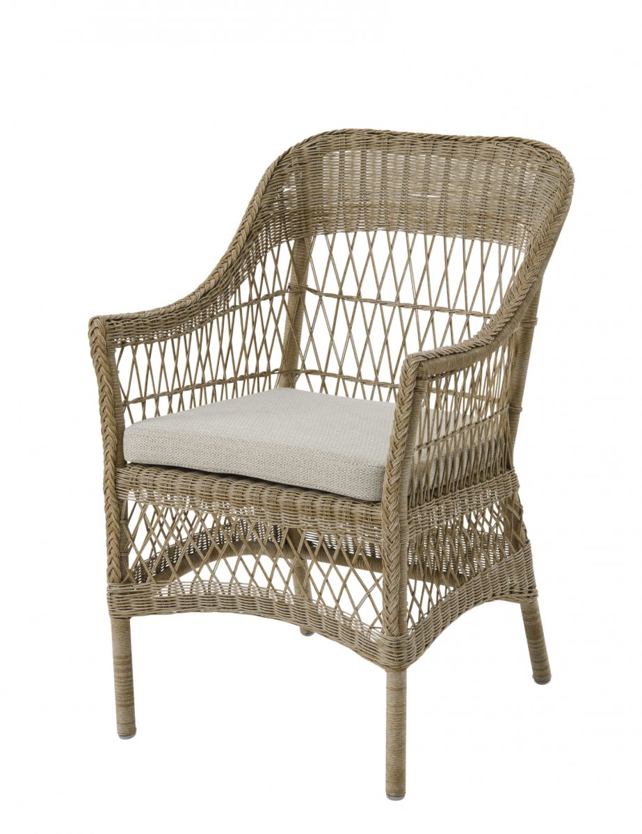 Denna fåtölj är tillverkad i konstrotting där fibern är genom färgad och därför UV-resistent. Så den bleks inte av solen. Den förblir sval även när möbeln står länge i solen. Konstrottingen är ISO-certifierad( internationellt accepterad standard). Ingår dyna i polyester där överdraget är tvättbart.